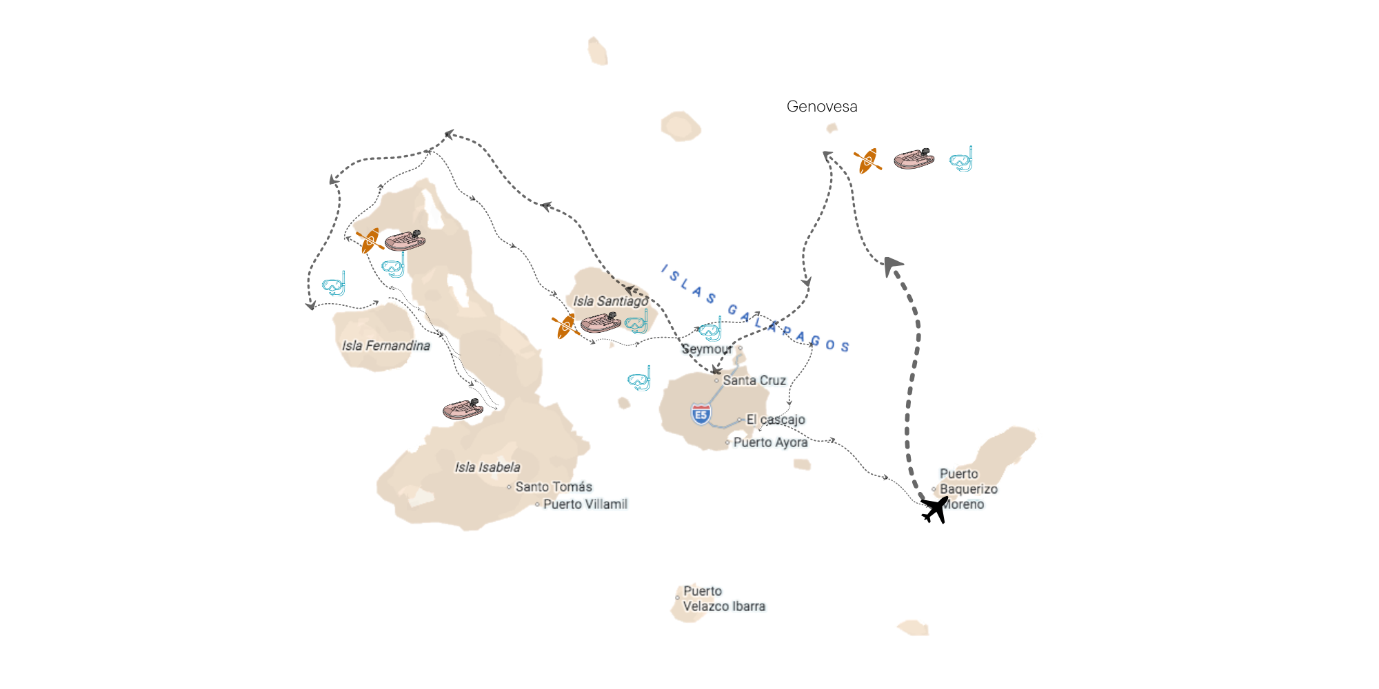 Cruzar el Ecuador · Especies endémicas · Snorkel